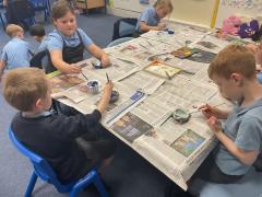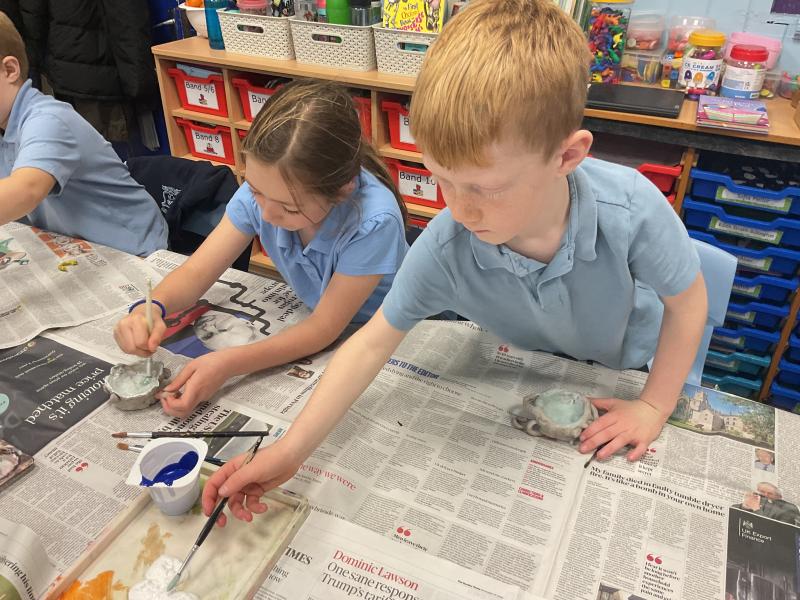 This afternoon, Class 2 have painted their Amalfi inspired clay pots which links to the Geography topic.