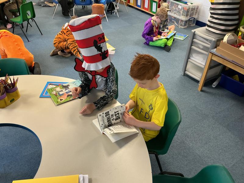 Class One absolutely loved taking part in the World Book Day activities. We started with a parade around the playground before coming back to class and engaging with activities like book scavenger hunt, design your own book cover, spot the fairy tale character as well as looking at lots of different books. After break time Class 3 joined us and we all shared our books together. We then joined in with a session from Julia Donaldson and Axel Schefler and learned how to draw the cat.