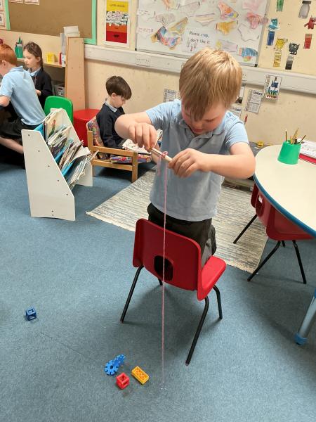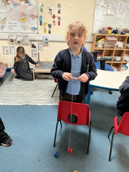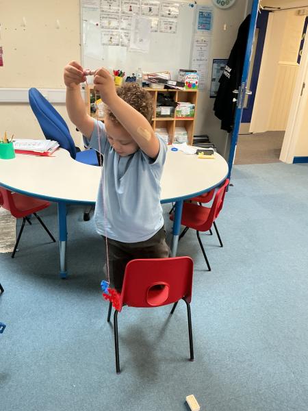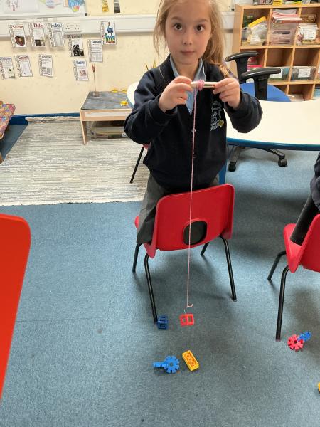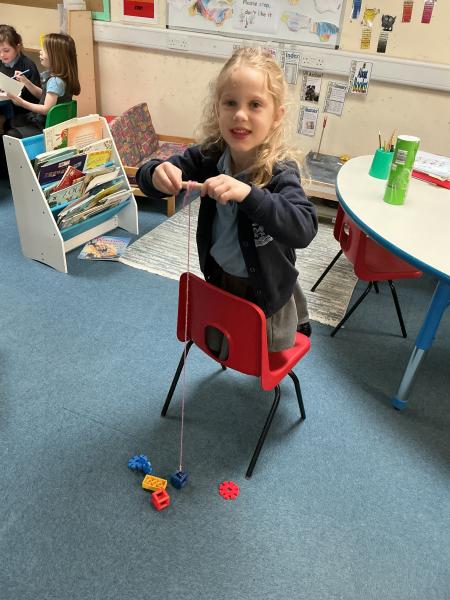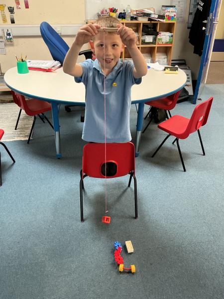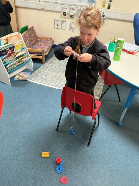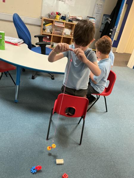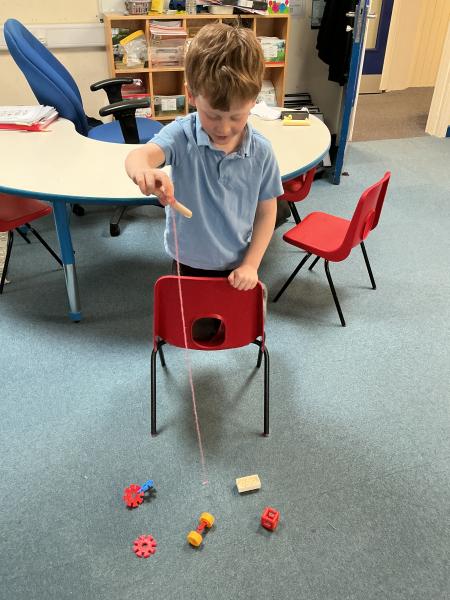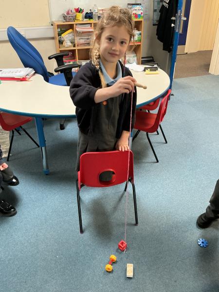 In science we have been learning about how machines can make our lives and jobs easier. We looked at the work a crane does and made our own cranes to pick up items from the floor.