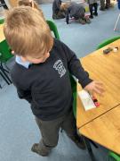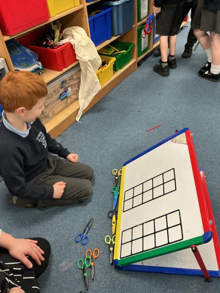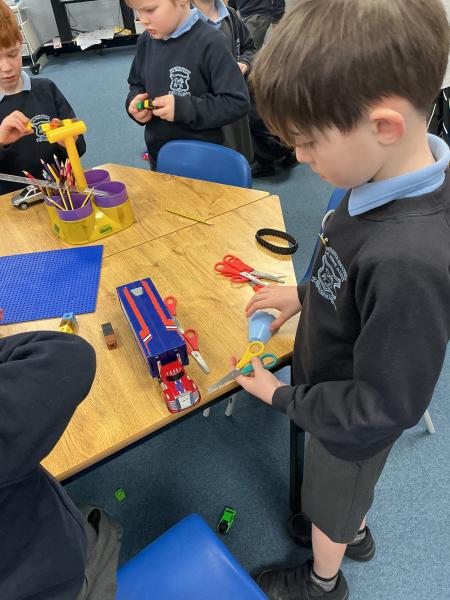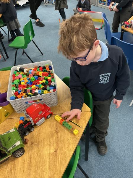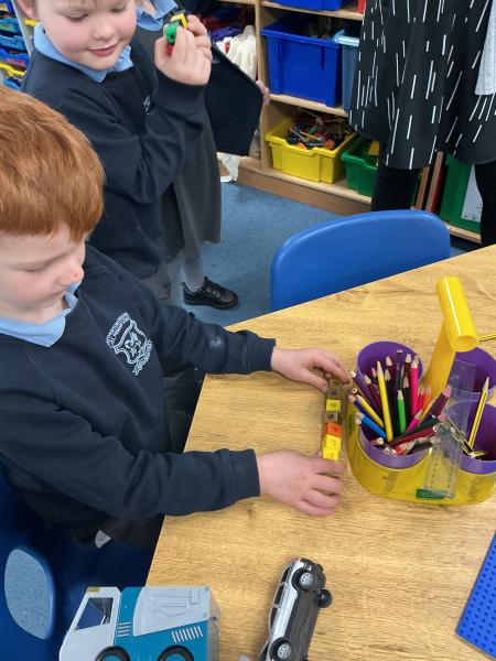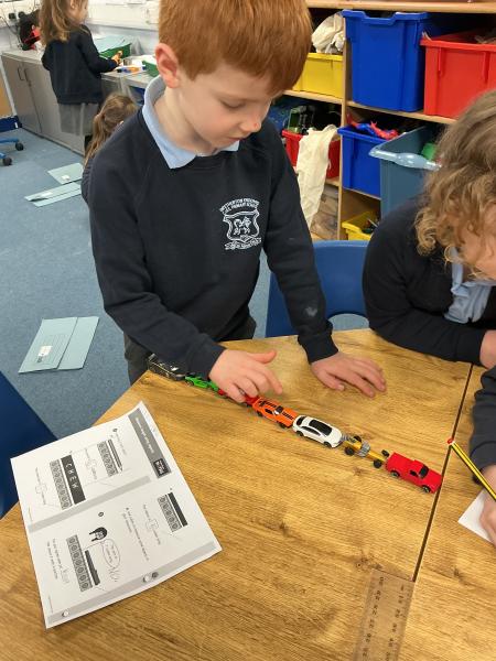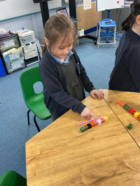 In maths we have been exploring length. We loved finding different things in the classroom to measure. We used cubes, scissors, cars and lots of other non-standard forms of measure to see how long things were.