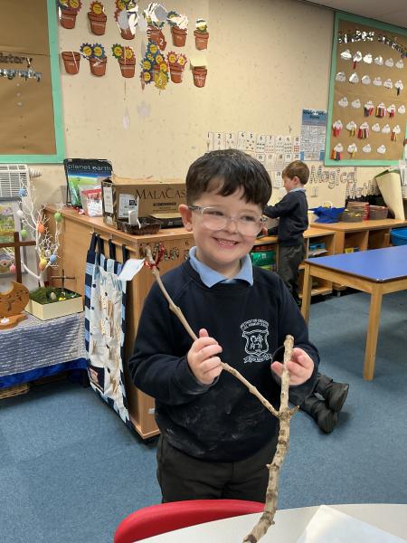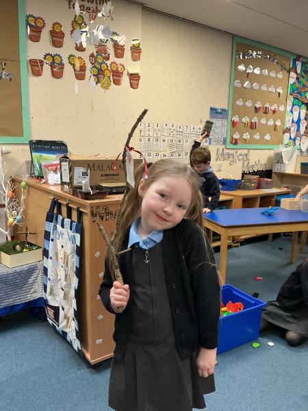 We have been reading Stanley's stick, a story about a boy who has a stick and using his imagination can change the stick into lots of different things. Reception went out and found their own sticks and thought of what it might become. We have really enjoyed using our imagination and trying hard to write the sounds we can hear in the words we say.